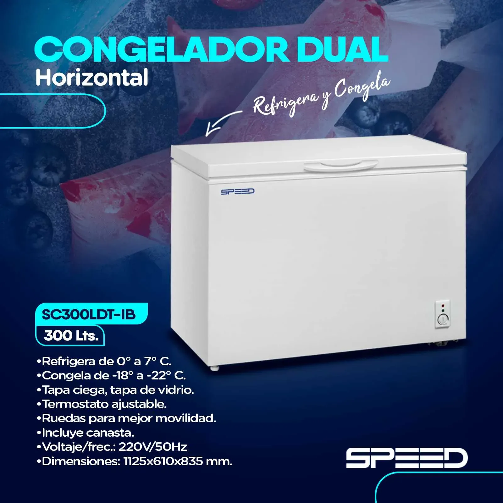 (1189) CONGELADOR SPEED DUAL HORIZONTAL 300LTS DOBLE TAPA (SC300LDT-IB)